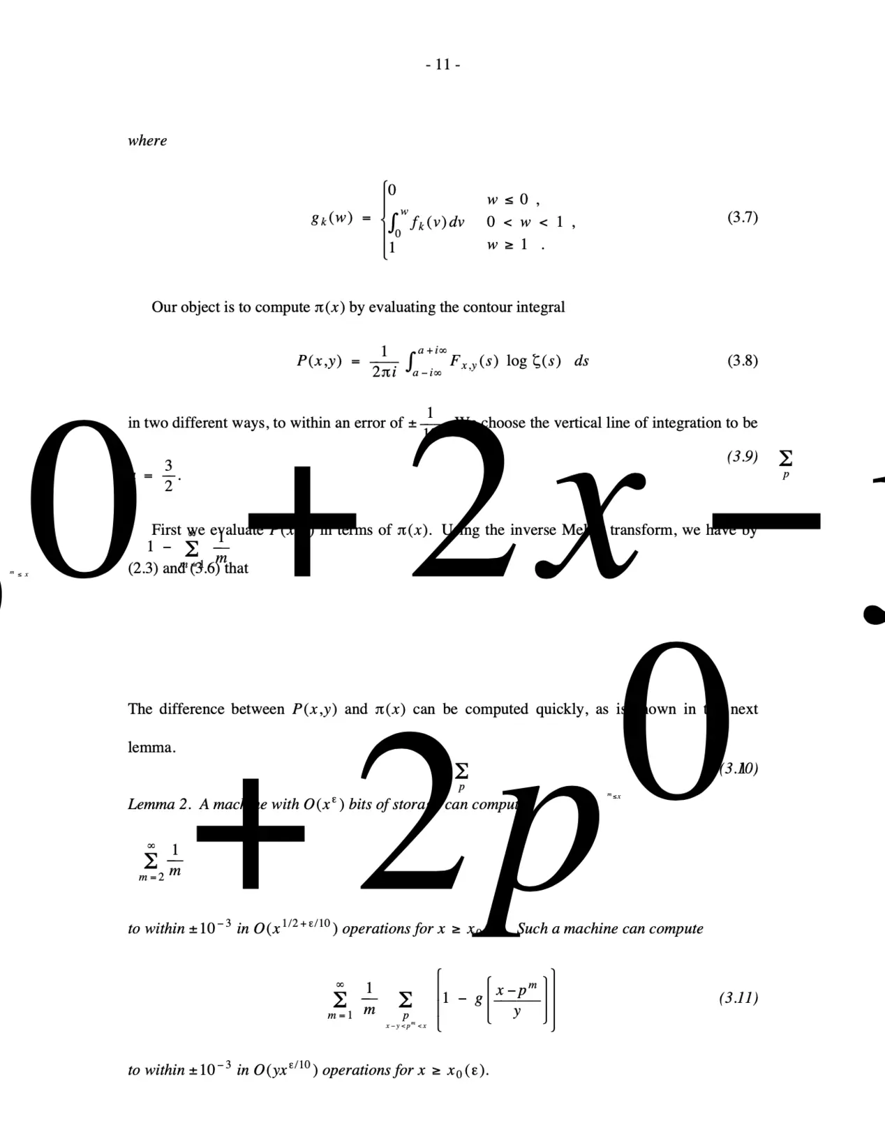 综上,这个算法的总体时间为 \(\tO(x\lambda + \lambda^{-1})\),所以令 \(\lambda = \widetilde \Theta(x^{1/2})\) 可以使得整体复杂度为 \(\tO(x^{1/2})\)。不过这里还埋了一个坑:如何在 \(\tO(1)\) 的时间内求一次 \(\Psi(s; x, \lambda)\),特别是 \(\Psi\) 里面还涉及到 \(\zeta(s)\)。这事可不简单,可以让我再水一篇文章了 23333